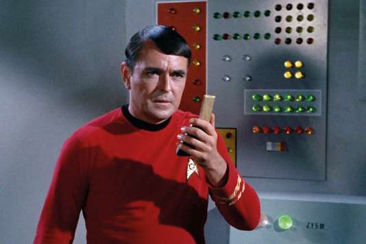 Montgomery « Scotty » Scott (James Doohan) avec son Communicator dans la série télé « Star Trek ». DR / PROD DB / PARAMOUNT TV